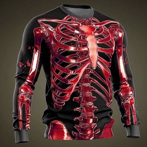 Maglione Uomo Scheletro Pullover Jumper Maglieria Collo A Giro Casual Scuro Vacanza Quotidiana Festival Stampa 3D Rimanere Caldi Maniche Lunghe Primavera Autunno Inverno Rossa Viola Oro