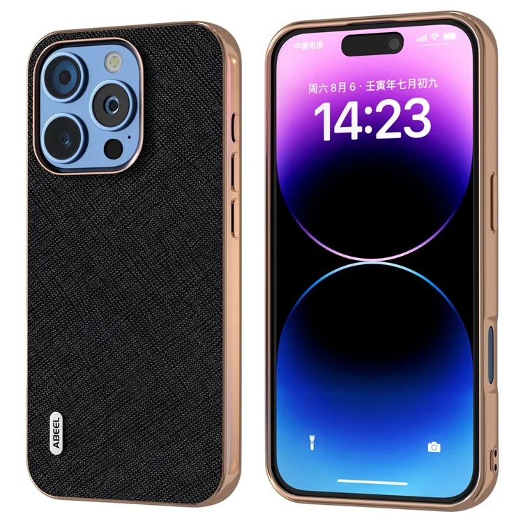 Abeel Mobilskal till iPhone 16 Pro Max Äkta Läder Cross Texture - Svart