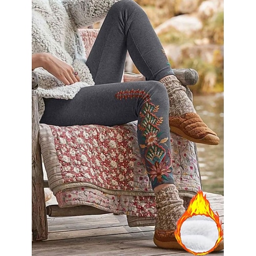 Pantaloni Fleece Boho Viking da donna leggings per le vacanze stile etnico vintage a lunghezza intera vita alta stampa grafica floreale termici caldi comodi elastici casual navy neri grigi primavera