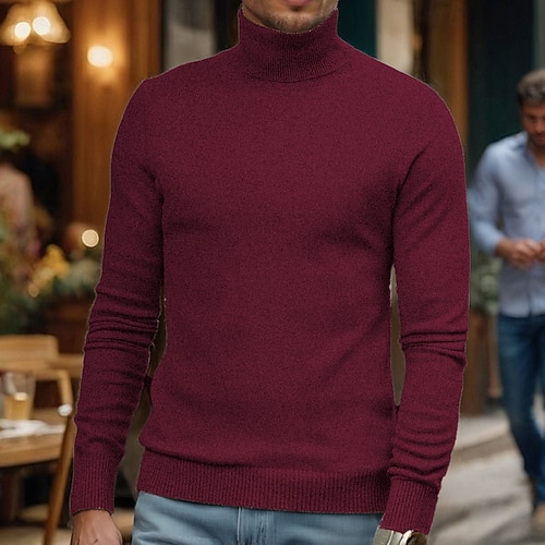 Per uomo Maglione Maglione a maglia A Coste Maglia Top Regolari Lavorato a maglia Semplice Dolcevita Moda Essenziale Vacanza Abbigliamento quotidiano Abbigliamento Autunno Inverno Cammello Vinaccia S