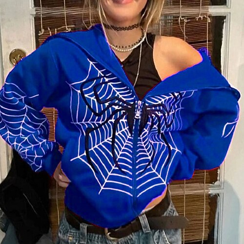 Per donna Felpe con cappuccio Grafico Moda Casual Manica Lunga Con Cappuccio Top Regolari Streetwear Abbigliamento Quotidiano Con zip Stampato Nero Rosso Blu Verde Primavera Autunno