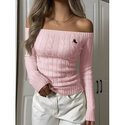 Per donna Top a maglia a coste Animale Moda Casual Manica Lunga Senza Spalle Top corti Quotidiano Uscire Weekend Ricamato Nero Avorio Rosa Grigio Primavera Autunno