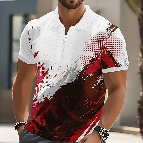 Herren Grafik Poloshirts mit Reißverschluss Golfshirt Kurzarm Polo-Shirts Hemden mit Kragen Urlaubskleidung Rave-Kleidung Party-Outfits 3D-Druck Viertelreißverschluss-Poloshirt Frühling Sommer Rote
