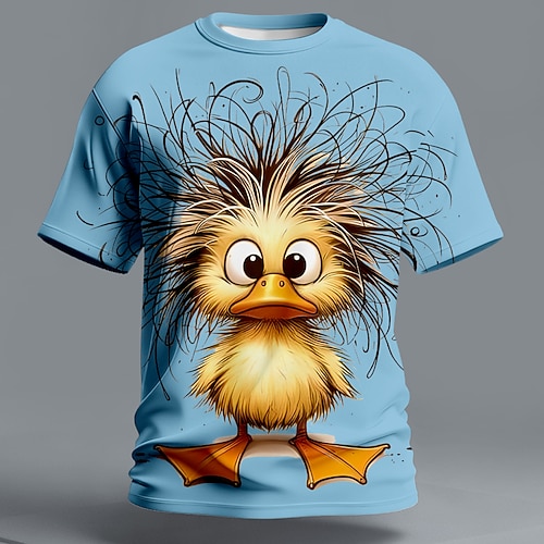 Maglietta da uomo divertente con anatra dai capelli spettinati, occhi grandi, anatroccolo carino, t-shirt grafiche, piume scarabocchiate, stampa, manica corta, abbigliamento casual estivo,