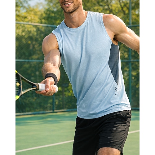Per uomo Patchwork Canotta da allenamento Carro armato Senza Maniche Asciugatura Rapida Elastico Traspirante Tennis Da golf Pickleball Girocollo Gilet / Panciotto Nero Verde militare Blu