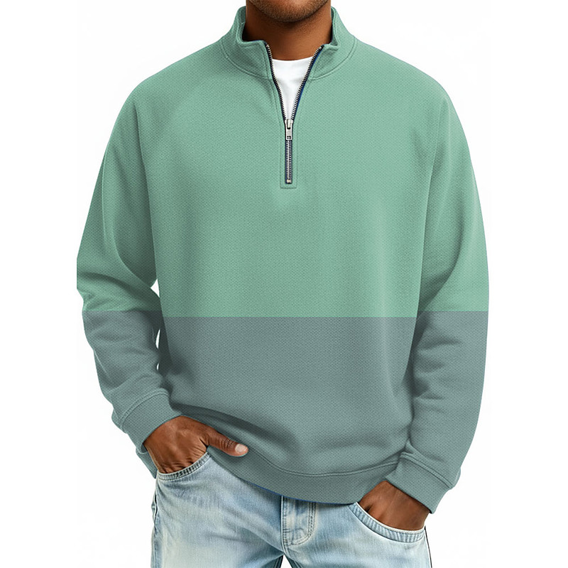 Men's Color Block Zip Polo Shirts Long Sleeve Polo Shirts Grandad Collar Casual School Athleisure Holiday Daily Wear 3D Print Quarter Zip Polo Spring Fall Blue Purple Brown