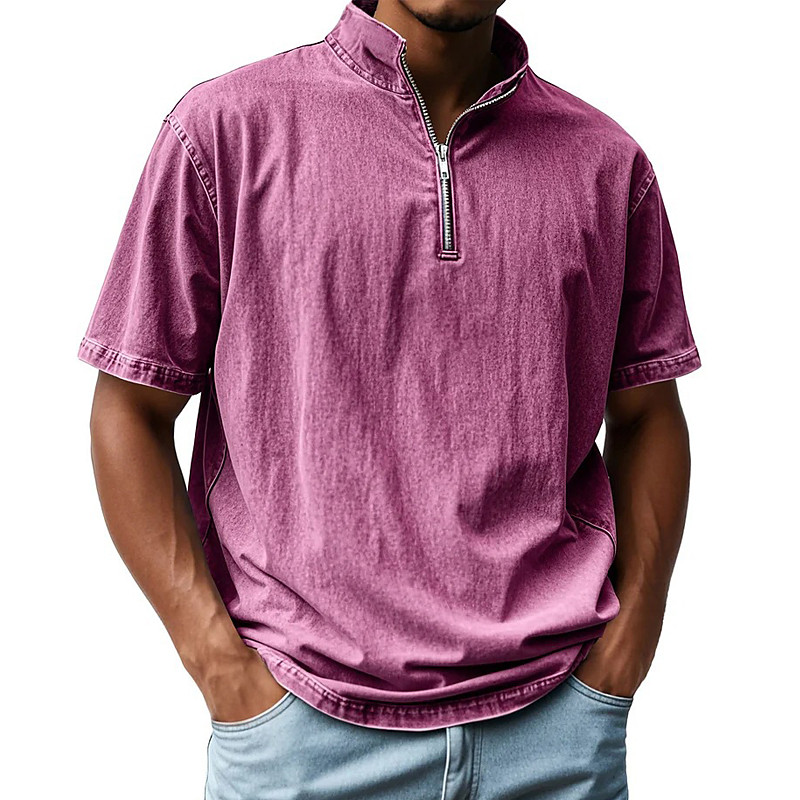 Men's Polo Polo Shirts Vacation Street Quarter Zip Short Sleeve Vintage Fashion Solid Color Zipper Summer Spring Regular Fit Blue Black Pink Navy Blue Purple Brown Polo