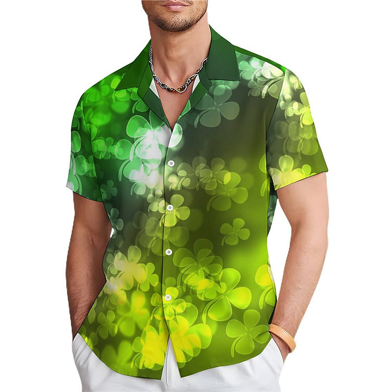 St.Patrick's Day Four Leaf Clover Casual Men's Shirt Daily Wear Going out Weekend Summer Turndown Short Sleeves Blue, Dark Green, Green S, M, L 4-Way Stretch Fabric Shirt St.