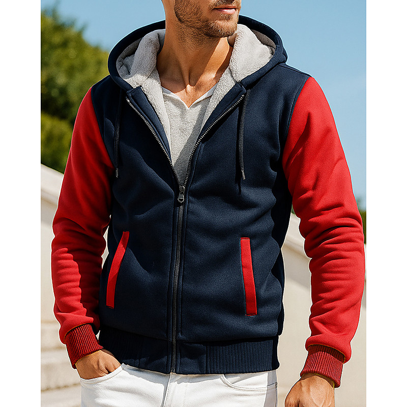 Men's Hooded Vest Fleece Vest with Pockets Long Sleeve Top Athleisure Color Block Warm Outdoor Travel Sports Sportswear Activewear Black Red Burgundy