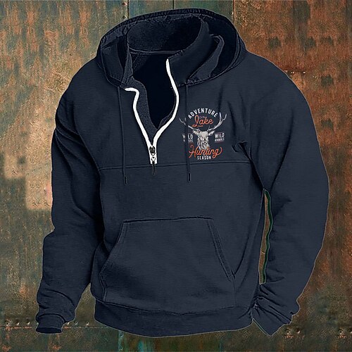Per uomo Felpa con cappuccio Felpa con cappuccio e zip corta Nero Rosa Vino Blu Verde Con Cappuccio Mucca Coulisse Tasca Sport Outdoor Quotidiano Ferie Streetwear Essenziale Casual Primavera Autunno