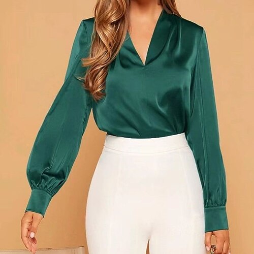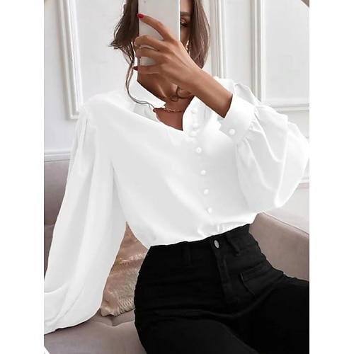 Per donna Blusa Tinta unica Vintage Casual Manica Lunga Colletto a Camicia Top Regolari Quotidiano Bottoni Blu Nero Vino Viola Verde Primavera Autunno Inverno