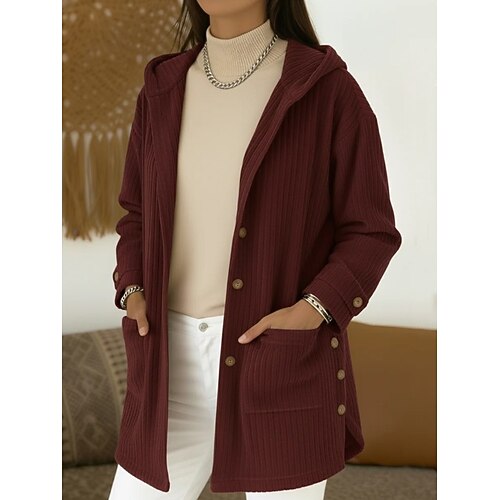 Per donna Cappotto Invernale Caldo Aperturaanteriore Casual Casuale Corto Con Cappuccio Vestibilità regolare Manica Lunga Capispalla Rosa Vino Marrone Autunno Inverno