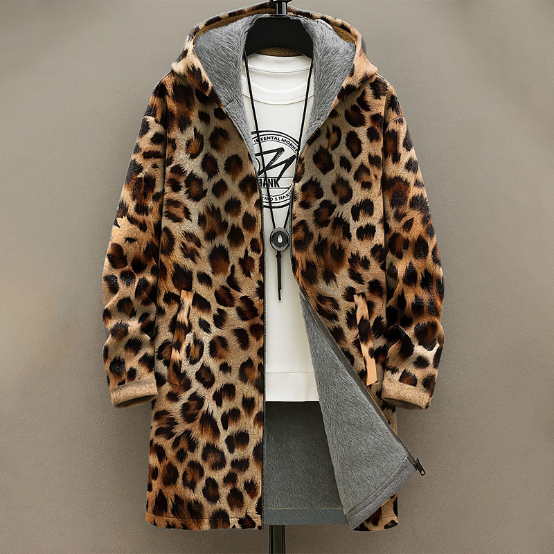 Men's Graphic Leopard Print Winter Coat Fleece Jacket Coat Thermal Warm Comfortable Casual Daily Wear Zipper Pocket 3D Print Fall Winter Hooded Long Sleeve Yellow Blue Brown