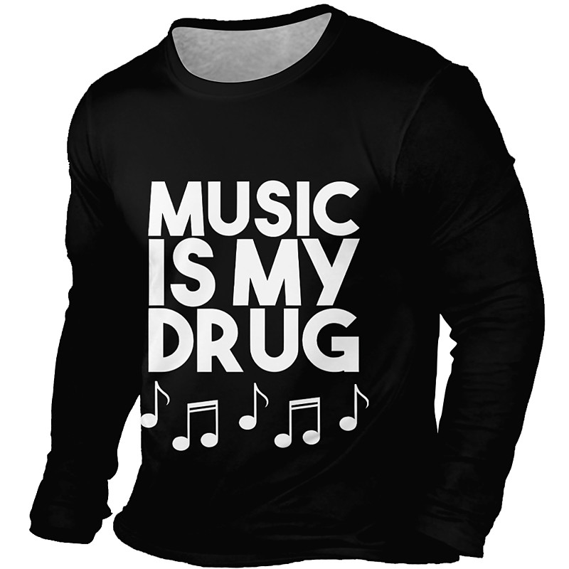 Men's Music Funny Slang T Shirt Long Sleeve T shirt 3D Print Crew Neck Shirt Fashion Daily Basic Casual Daily Street Blue Black Red Summer Spring Clothing Apparel S M L XL XXL XXXL