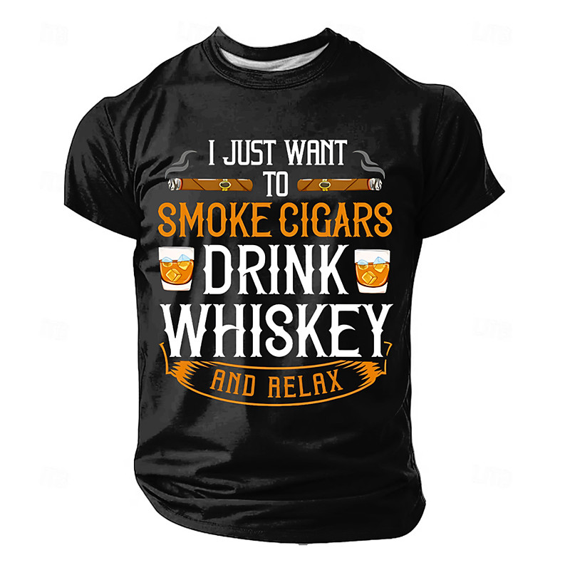 Maglietta grafica da uomo Divertente 'Quale giorno è oggi Chi se ne frega Sono in pensione' Design con uomo whisky