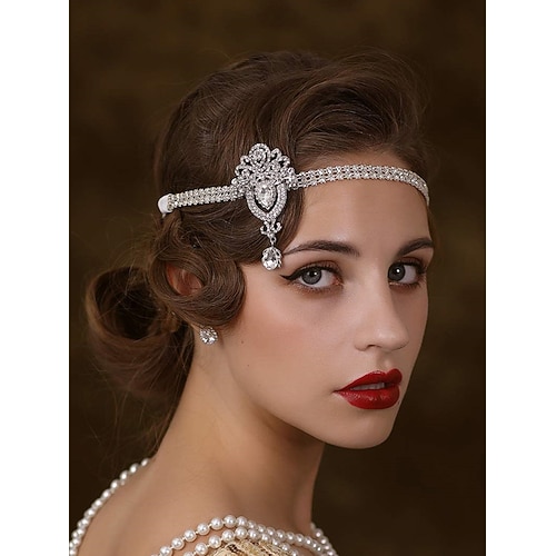 Cerchietto flapper da donna anni '20 con strass - accessorio per capelli vintage in stile Gatsby con perline di cristallo per feste retrò, matrimoni o eventi in costume