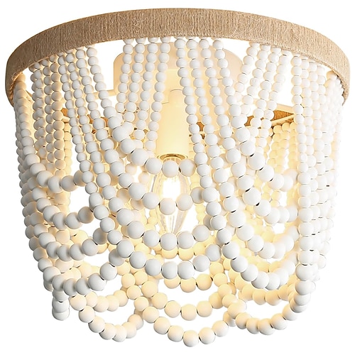 Lampada bohémien con perline di legno, lampada da soffitto a incasso a 3 luci, colore primario, mini lampadario rustico antico per sala da pranzo, camera da letto, cameretta delle ragazze, asilo nido,