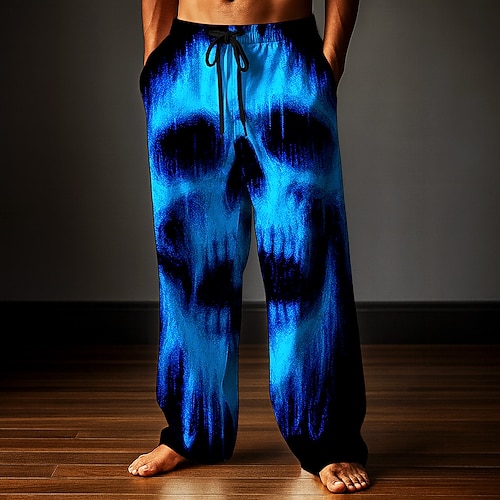 Costumi da uomo teschio pantaloni pantaloni baggy pantaloni casual vita media stile gotico scuro vacanza vita con cordoncino elastico pantaloni simili al lino con tasche estate primavera autunno 3D