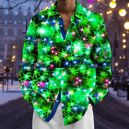 Natale Per uomo Glitter scintillanti Luci natalizie Camicia Camicia con Bottoni Manica Lunga Moda Casual Ferie Primavera Autunno Collo ripiegato Stampa 3D Una tasca anteriore Camicia tipo lino