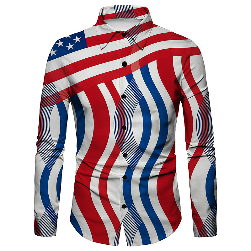 American 250 Retro Vintage 1970s Shirt Aloha Shirt Long Sleeves Hippie Geometic Ethnic Fancy Dress Men's Masquerade 4th of July Party Independence Day Semiquincentennial Adults' Shirt