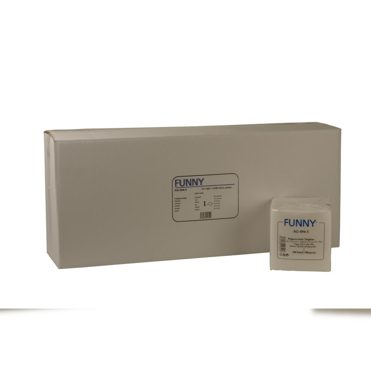 Plock GmbH 5000 Prägeservietten FUNNY | 1-lagig | 1/4-Falz | weiß | 32 x 32 cm