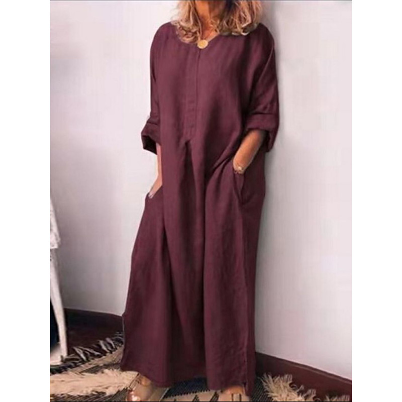 Women's Blue Black Yellow Summer Spring Fall Maxi Dress Faux Cotton Linen Casual Dress Sundress Vacation Fashion Modern Daily Outdoor Vacation Regular Fit Plain Crew Neck