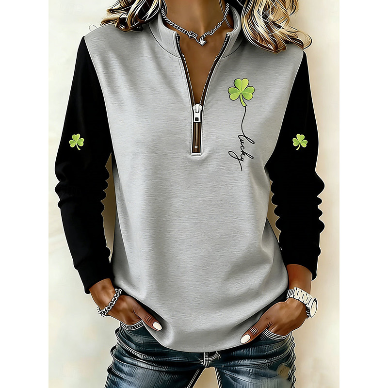St. Patrick Women's Pullover Sweatshirt Zip Up Sweatshirts Graphic Shamrock Fashion Casual Long Sleeve Crew Neck Half Zip Regular Tops Street Dailywear Zipper Print Green Fall Winter
