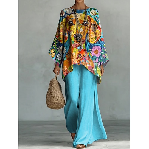 Per donna Set di Pantaloni Manica Lunga Girocollo Grafico Animale Sfumatura Stampato Moda Streetwear Casuale Quotidiano All'aperto Blu Primavera Estate Vestibilità comoda