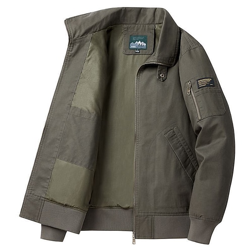Per uomo Giacca camicia Giacca invernale Semplice Vacanza Abbigliamento quotidiano Nero Cachi Verde militare Manica Lunga Bavero Autunno Inverno Abbigliamento Con zip