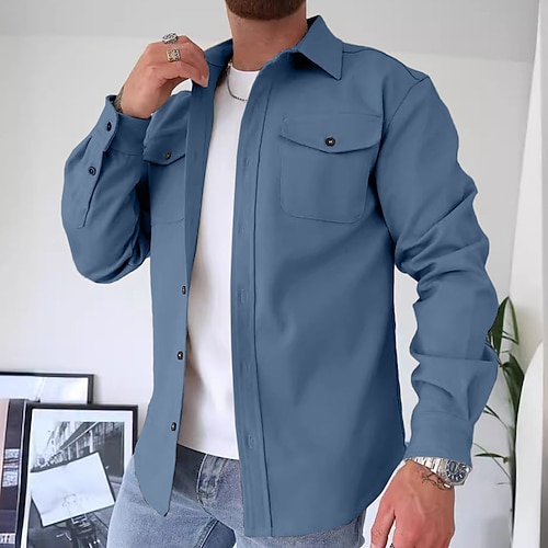 Per uomo Camicia Camicia casual Camicia di flanella Camicia con Bottoni Sopracamicia Nero Blu marino Blu Grigio chiaro Verde militare Manica Lunga Semplice Colletto Quotidiano Uscire Abbigliamento