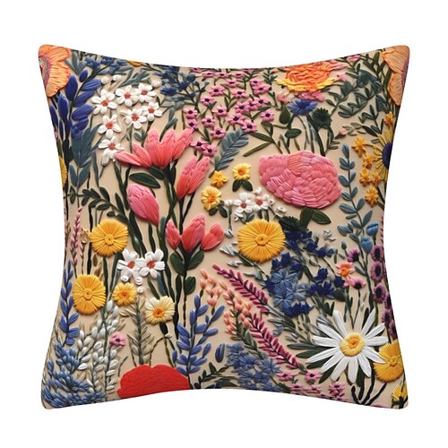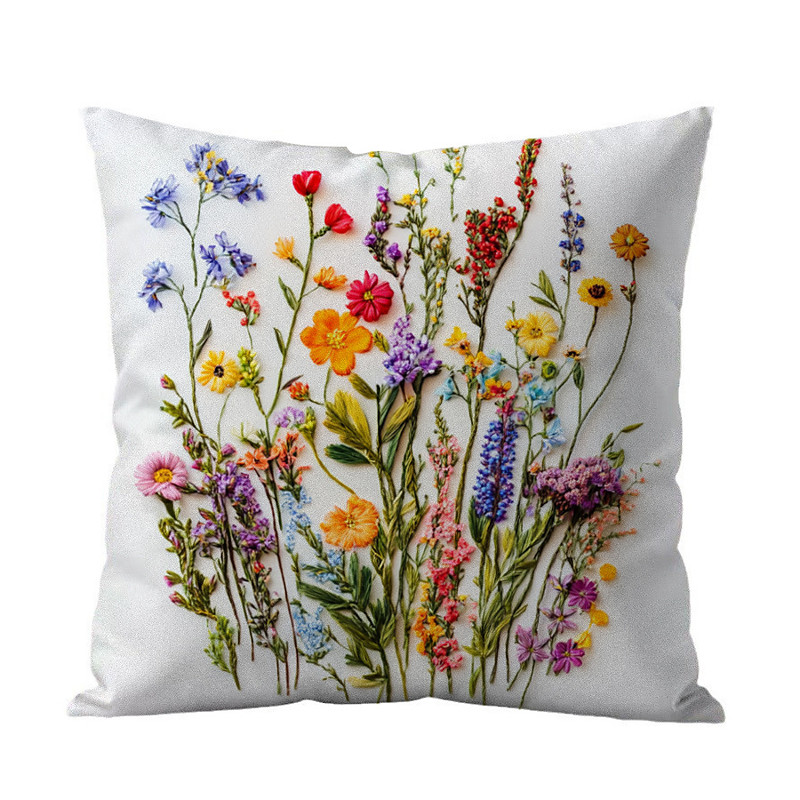 Floral Pattern Pillow Cover 2D Flat Print Soft Comfortable Cushion Case with Faux embroidery for Living Room Sofa Bedroom Home Decoration