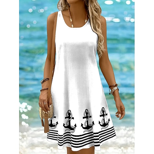 Per donna Mini Abito Vestito Estivo Abito a trapezio Abito a spalle scoperte Vacanza Casual Boho Ferie Spiaggia Vestibilità regolare Grafico Geometrico A righe Senza Maniche Girocollo Scollo Tondo