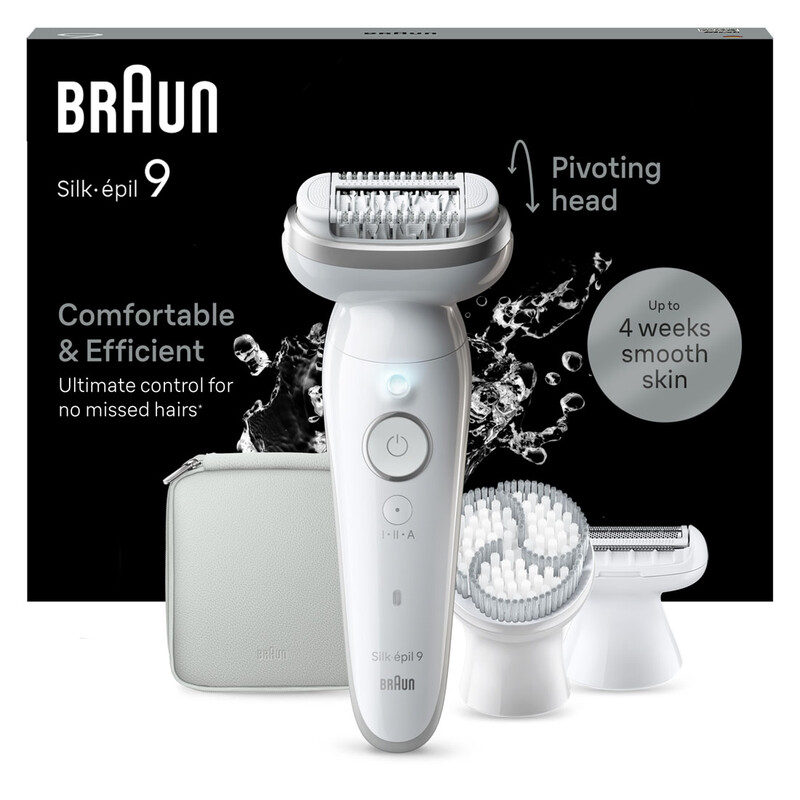 Braun Silk-épil 9 9-061, Wet & Dry Use Epilator For Easy Hair Removal, Lasting Smooth Skin, White/Silver