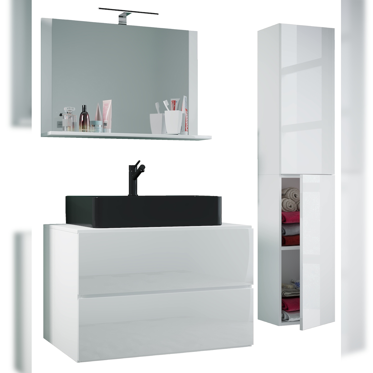 VCM Badmöbel Waschtisch Lendas Weiß H. 150 x B. 80 x T. 51 cm