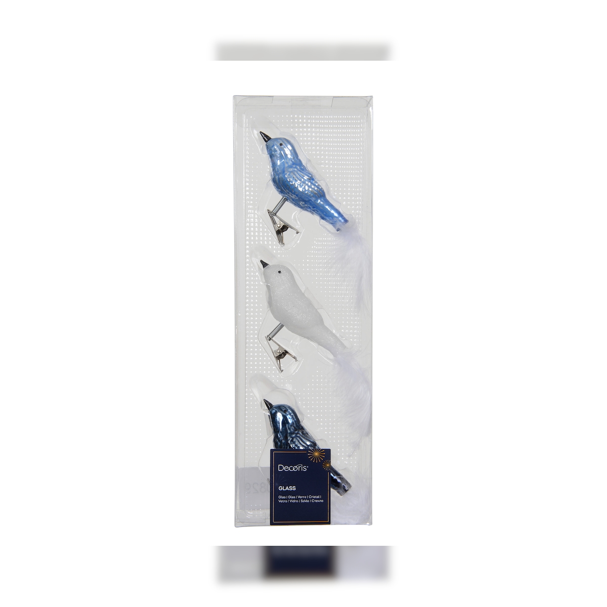 3 Glasvögel auf Clip Christbaumschmuck & Weihnachtsbaumschmuck Vögel Weihnachtskugeln Weihnachtsbaum Blau Weiß Mix
