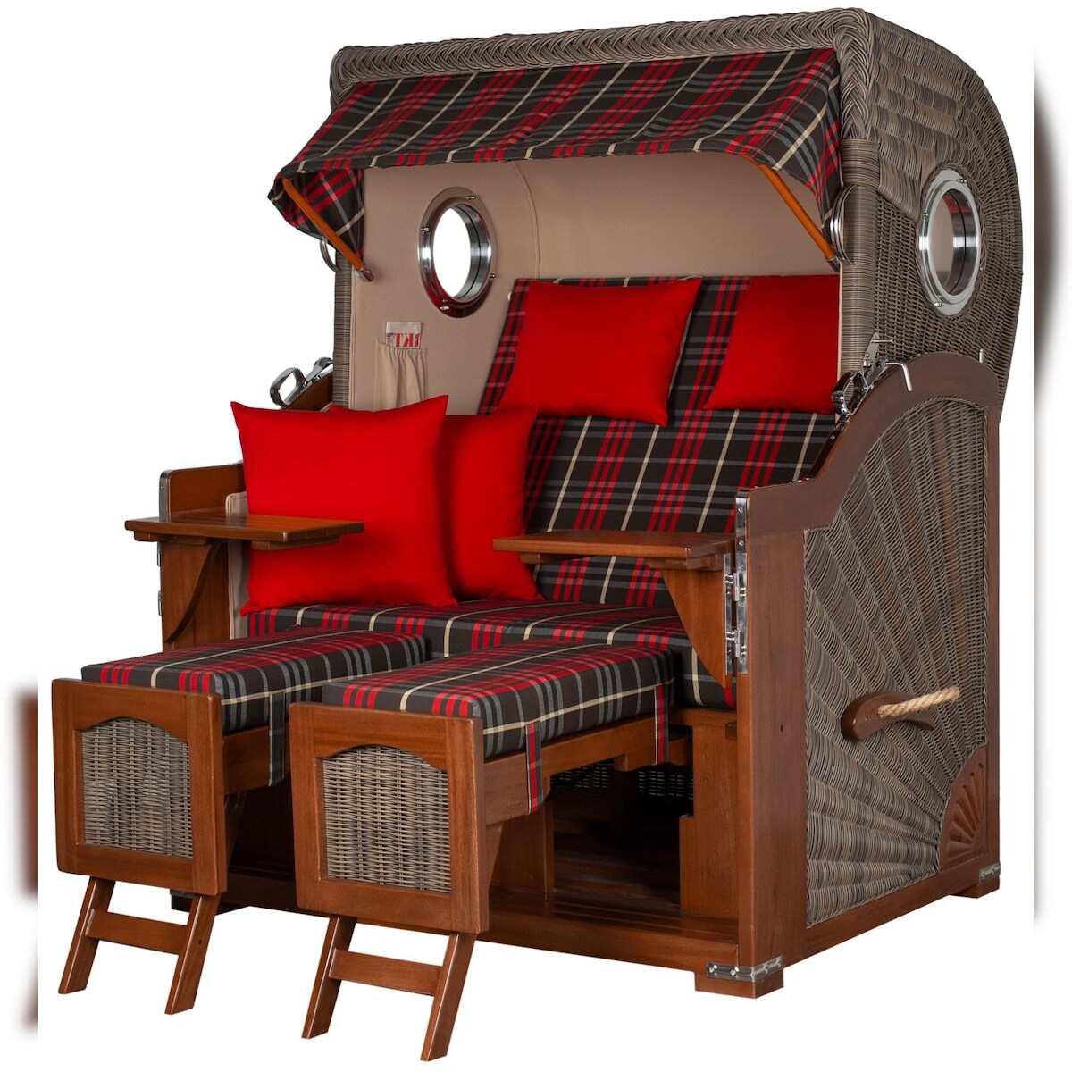 Mr. Deko Strandkorb Komplettset - bene living - Ammersee Mahagoni Bullauge - PE grau - Modell 529 - inkl. Liftersystem