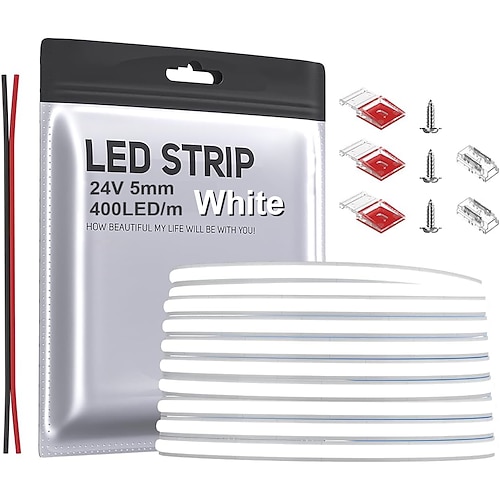 FCOB-LED-Streifen, 5 mm breit, super schmal, flexibel, hohe Lichtdichte, gleichmäßiges Licht, 5 m, DC 24 V, mehrere Farben erhältlich, CRI 90, dimmbares LED-Band für die Inneneinrichtung (ohne