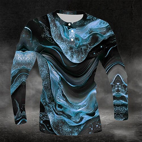 Per uomo Astratto Modello in marmo Maglia Henley Manica Lunga Moda Carino Quotidiano Casuale Ferie Uscire Primavera Autunno Tutte le stagioni Blu marina Nero Blu Giallo Verde Henley Maglietta Henley