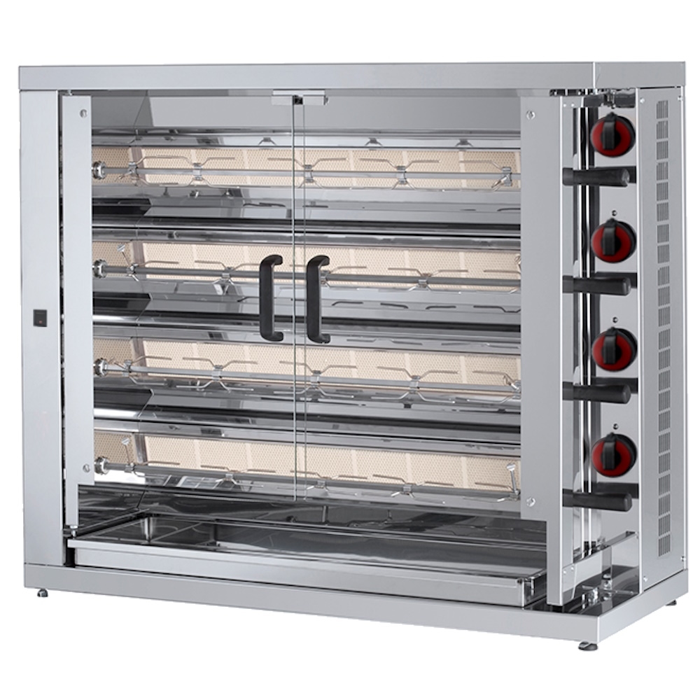 Hähnchengrill mit gas mit licht. 4 schwerter = 20/24 hühner - 1100x450x970 mm - 28 Kw + 110 W 230/1V - 53200L42 Eurast