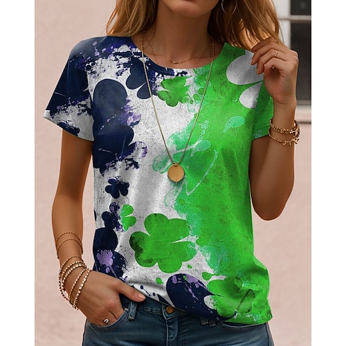 Maglietta da donna di San Patrizio T-Shirt Tie Dye Shamrock Bandiera Irlandese Moda Maniche Corte Collo a Giro Regolari Tops Stampa Quotidiana Weekend Rosso Blu Viola Verde Estate