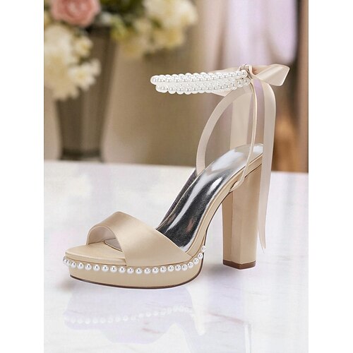 Women's Satin Platform High Heel Sandals with Peep Toe and Ankle Strap – Elegant Bridal Shoes for Weddings and Formal Occasions