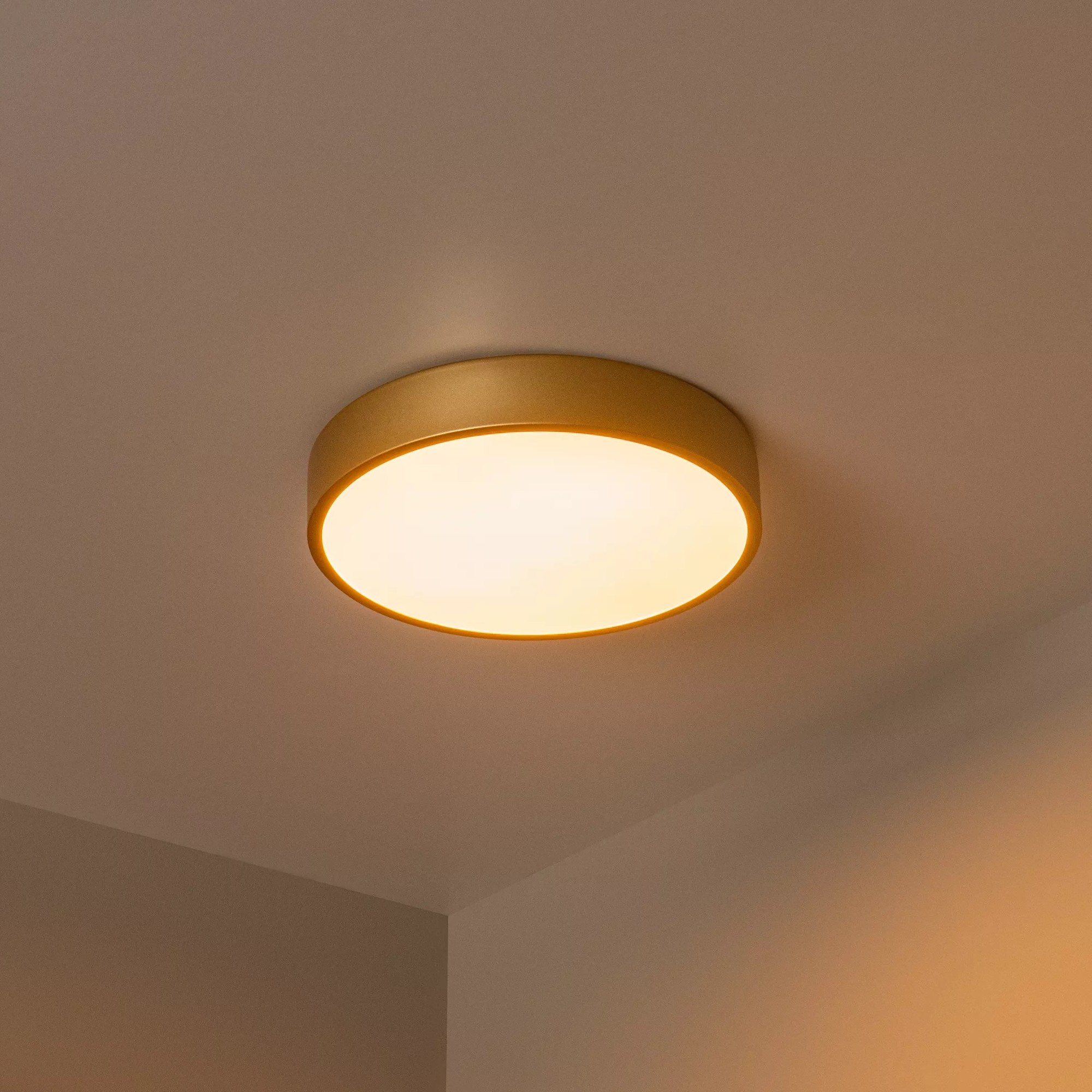 Lucide Unar - plafondverlichting - Ø 30 x 5 cm - 18W dimbare LED incl. - 3 stappen dimmer - mat goud