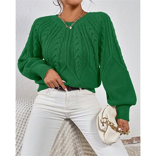 Per donna Felpa Casual Morbido Colore Puro A Coste Girocollo Lavorato a maglia Testurizzato Manica Lunga Top Regolari Maglia All'aperto Quotidiano Weekend Nero Rosa Autunno Inverno