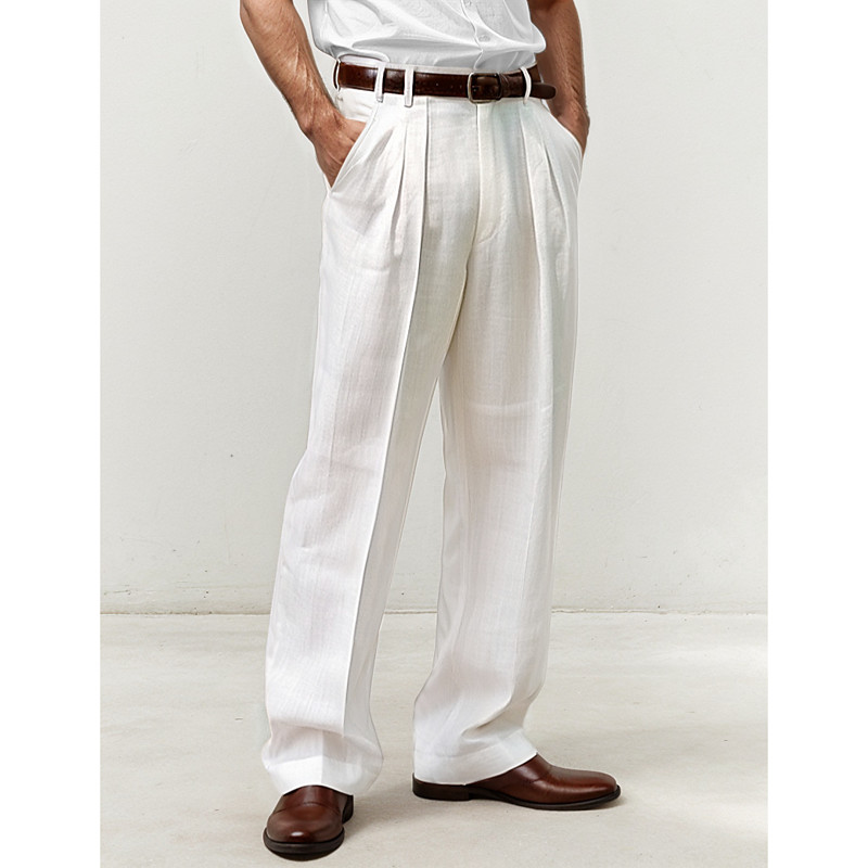 Men's Linen Pants Trousers Summer Pants Front Pocket Pleats Straight Leg Plain Comfort Breathable Casual Daily Holiday Fashion Basic Black White
