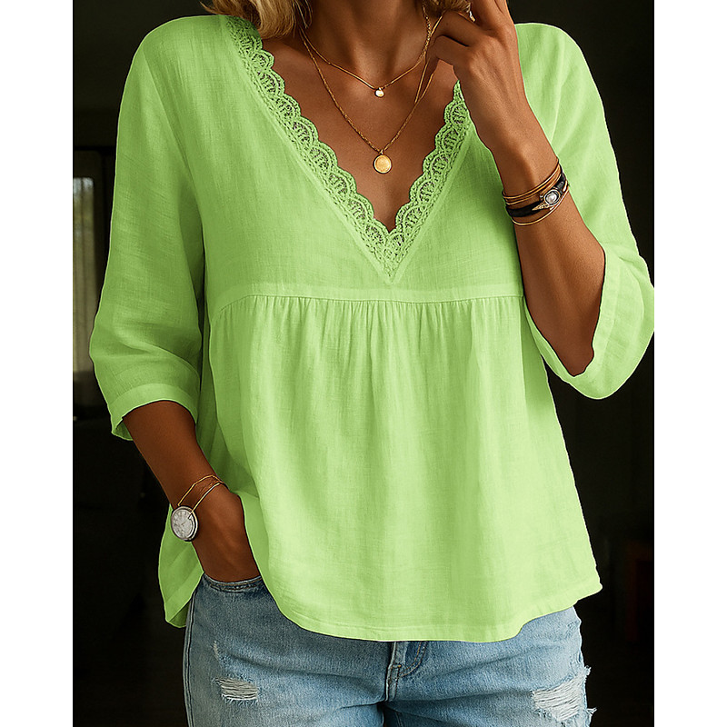 Women's Shirt Linen-Inspired Shirts Blouse Plain Basic Casual Short Sleeve V Neck Regular Tops Daily Holiday Orange Green Light Blue Summer
