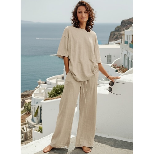Per donna Abbigliamento da Casa Completi Essenziale Colore Puro Tasca Elastico in vita Maglietta Pantalone Quotidiano Streetwear Manica Lunga Girocollo Blu Nero Bianco Blu marino Marrone chiaro