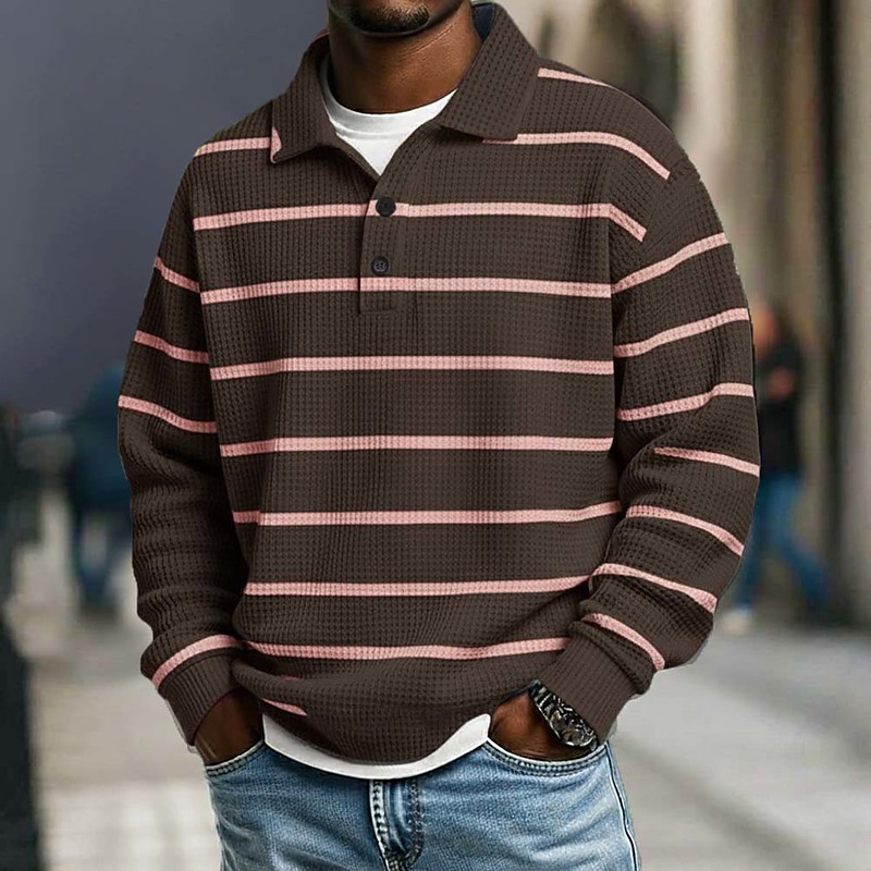 Men's Horizontal Stripes Waffle Polo Shirts Rugby Polo Textured Long Sleeve Polo Shirts Lapel Sportswear Casual School Athleisure Daily Wear 3D Print Spring Fall Winter Blue Purple Brown