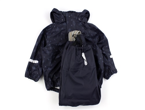 Celavi Dark Navy Printet Regntøj Bukser Og Jakke - Str. 100 Cm