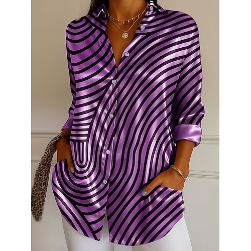Camicia da donna Elegante Top Formale Camicia da lavoro Grafica Geometrica Striata Elegante Stile Moderno Manica Lunga Collo Feste Sera Abbigliamento Quotidiano Blu Viola Verde Khaki Grigio Estate