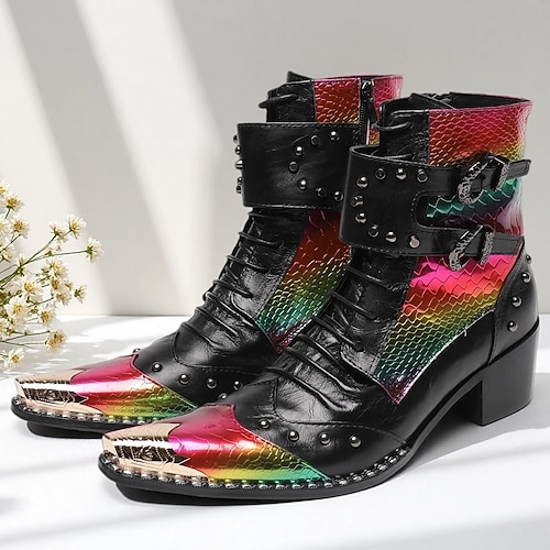 stivali da uomo in vernice nera con borchie: alla moda e audaci, ideali per feste alla moda, abiti da sera e uscite informali
